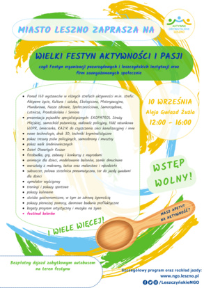Akcja Aktywne Obywatelskie Leszno powstała z myślą o mieszkańcach. Cel to pokazanie mieszkańcom potencjału organizacji pozarządowych, które aktywnie działają w społeczeństwie. Każdego roku Aktywne Obywatelskie Leszno rozpoczyna Wielki Festyn Aktywności i Pasji, który przyciąga tłumy mieszkańców. Aktywne Obywatelstwo Leszno to nie tylko festyn, ale również Tydzień Inicjatyw Pozarządowych, czyli ciąg wydarzeń podczas, których organizacje pozarządowe i mieszkańcy Leszna jednoczą się i zapraszają do wzięcia udziału w wydarzeniach reprezentujących pozarządowe i społeczne Leszno.