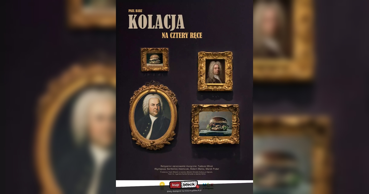 Johann Sebastian Bach i George Frideric Handel dwaj najznakomitsi kompozytorzy epoki baroku, żyjący w tym samym czasie i choć ich twórczość miała różne style i charaktery to podziwiali się nawzajem a podziw nie rzadko niósł za sobą głęboką zazdrość . Warto jednak zaznaczyć, że pomimo podziwu, jaki Bach darzył Handela, i na odwrót ich muzyka różniła się znacząco pod wieloma względami. Bach był znany z rozbudowanych fug i skomplikowanych struktur muzycznych, podczas gdy Handel tworzył przede wszystkim opery, oratoria i muzykę orkiestrową. Niemniej te dwie wielkie indywidualności pozostawiły niezatarte ślady w historii muzyki i pozostają inspiracją dla wielu kompozytorów i muzyków do dziś. Czy zatem "Kolacja na cztery ręce" Paula Barza realizowana przy współudziale trzech instytucji kultury tj. Teatru Miejskiego w Lesznie, Miejskiego Ośrodka Kultury w Głogowie oraz Teatru im. Cypriana Kamila Norwida w Jeleniej Górze jest spektaklem li tylko o muzyce? Nie. Przede wszystkim jest to spektakl o ludziach, którzy zostali "dotknięci" geniuszem muzycznym przynoszącym z jednej strony sławę i uznanie rzeszy wielbicieli z drugiej rozterki i wewnętrzne konflikty. Podczas wspólnej kolacji w Lipsku w zaciszu hotelowego pokoju dochodzi do konfrontacji myśli twórczej obu kompozytorów, następuje swoistego rodzaju "wyłożenie kart na stół" czyniących owo spotkanie grą czyja muzyka jest lepsza i bardziej wartościowa. Ale tak naprawdę, to dowiadujemy się jakimi są ludźmi. Z jakich emocji złożone jest ich życie i dlaczego tworzeniu towarzyszy ból istnienia, rozgoryczenie, smutek , żal i poczucie niespełnienia. Realizując "Kolację na cztery ręce" wspólnie chcemy wejść w głąb natury ludzkiej ukazując jej zalety ale również ciemne strony charakteru głównych bohaterów sztuki. Spróbujmy prześledzić jaką metamorfozę muszą przejść aktorzy aby uwiarygodnić grane przez siebie postaci. W Bacha zobaczymy Roberta Manię, w postać Handla wcieli się Bartek Adamczak a towarzyszy im Marek Prałat jako Szchmid.