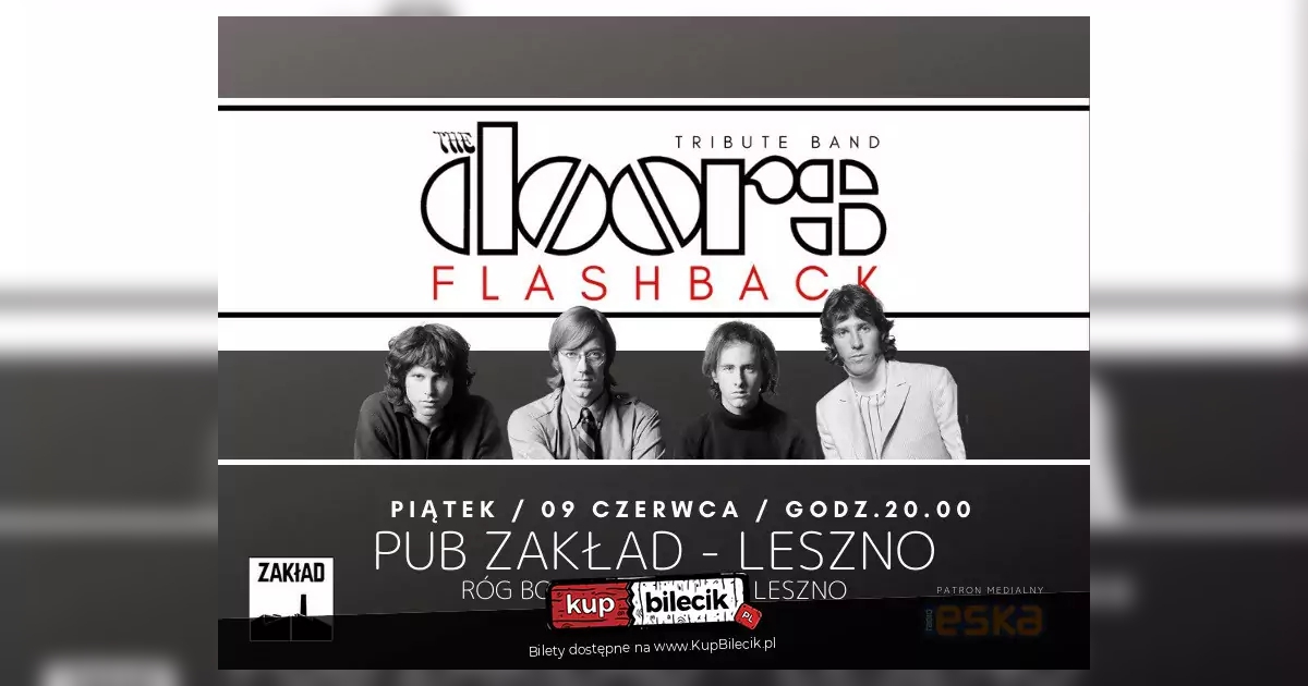 "The Doors Flashback" to nowy i prawdopodobnie jedyny na polskim rynku cover band legendarnej, amerykańskiej grupy "The Doors". Jesteśmy składem grającym ten repertuar całkowicie na żywo. Nasze koncerty w hołdzie The Doors to 90 minutowe show, w trakcie którego odtwarzamy magię i intensywność koncertów, którymi w latach 60 zachwycał zespół The Doors. Próbujemy uchwycić szamanistyczną osobowości Jima Morrisona, hipnotyzujące i wirujące klawisze Raya Manzarka, inspirowane bluesem gitarowe riffy Robbiego Kriegera oraz elektryzujące rytmy bębnów Johna Densmore'a. Można być pewnym, iż w trakcie naszych koncertów nie zabraknie "Light My Fire", "Riders on the Storm", "The End" czy "Hello, I Love You"... Dodatkowo, zespół swoje koncerty wzbogaca o klimatyczne wizualizacje, które potęgują pozytywne doznania estetyczne wśród słuchaczy. Koncerty "The Doors Flashback" to gwarancja 90 minutowej zabawy i niezapomnianych, wysublimowanych wrażeń. Fani Króla Jaszczura na pewno nie będą mieli podstaw do narzekania...